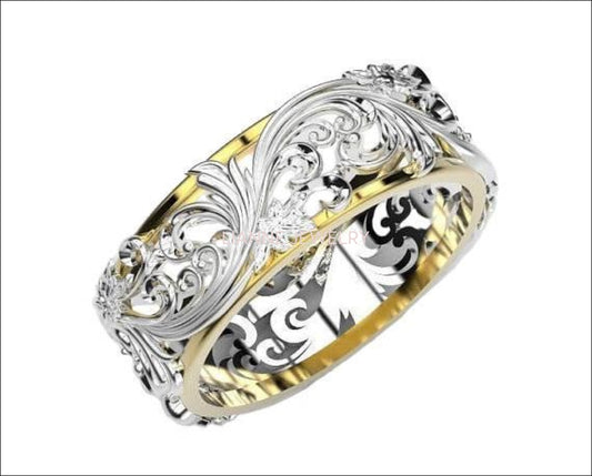 Filigree Engagement Ring, 18K Leaf Wedding Band, 2 Tone Wedding Ring, Celtic ring, Floral Jewelry