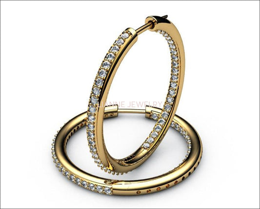 Gold Thin Hoops with Diamonds inside out, 94 Diamonds Hoop Earrings, 1.1/4 carat, 18K White gold 18K Yellow gold 18K Rose gold forever