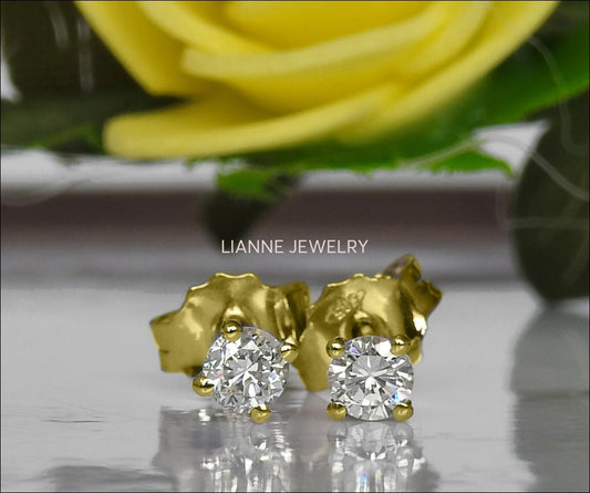 14K Gold Studs, Girl Earrings, Small Stud Earrings, White Sapphire Studs, Christmas Gift