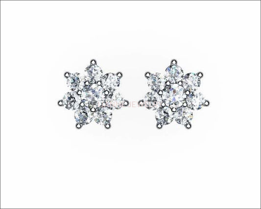 14K Flower Diamond Studs, Anniversary Earrings Cluster Earrings, Sun Earrings
