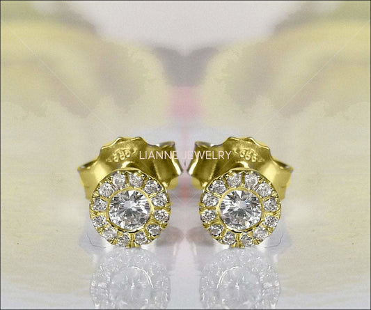 1/2 carat Diamond Studs Yellow or White gold Stud Earrings Halo Earrings