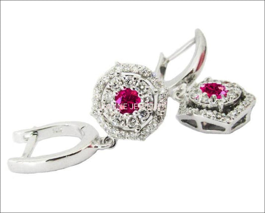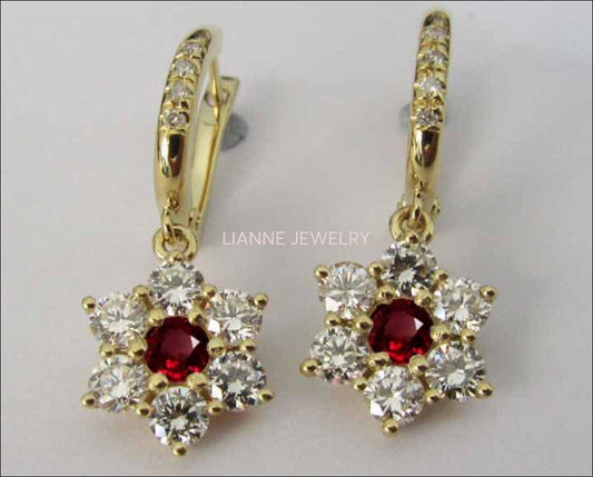 Unique Vintage Ruby Dangle Earrings Wedding Earrings 18K Gold Top Quality Rubies and Diamonds Flower Design Perfect Womens Gift for Her