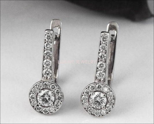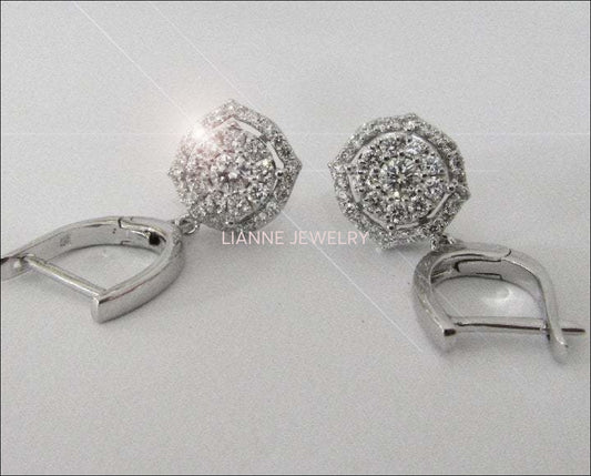 Lever Back Earrings Halo Earrings Diamond Hoop Earrings Wedding Earrings Diamond Floral Earrings 14K or 18K White Gold