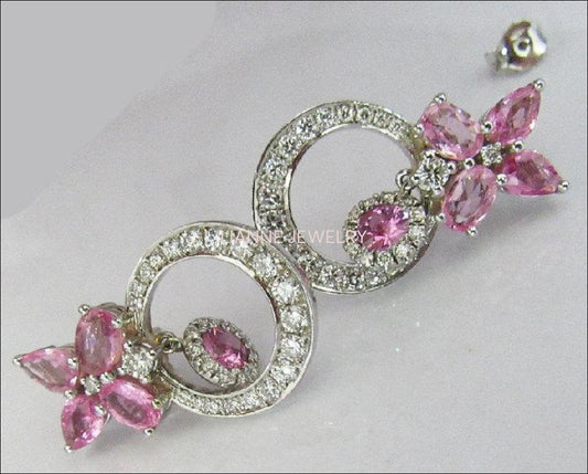 Vintage Jewelry Diamond Earrings Dangle & Drop Earrings Pink Earrings Wedding Earrings Floral Earrings 14K White Gold Vintage Earrings