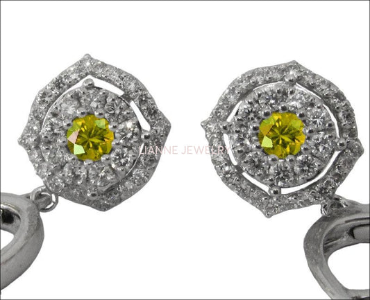 Vintage Diamond Earrings Yellow Sapphire Earrings Drop Chandelier Earrings Wedding Earrings Floral Earrings 14K White Gold Vintage Earrings