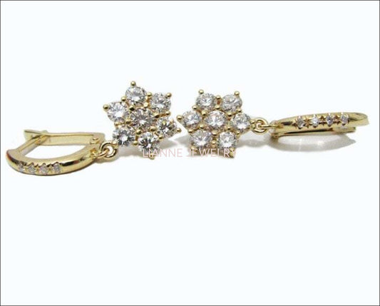 Vintage Earrings Dangle Diamond Drop Earrings Leverback Earrings 14K Gold Earrings Diamond Earrings Anniversary Gift Valentines Gift