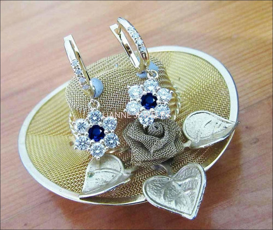 Lever back Flower Earrings Sapphire Earrings Dangle Drop Diamond Earrings Chandelier Earrings 18K Gold Flower Design Perfect Gift for Her