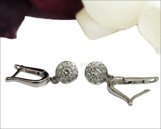 Vintage Gold Earrings Gold Earrings White gold Diamond Halo Drop Earrings 14K