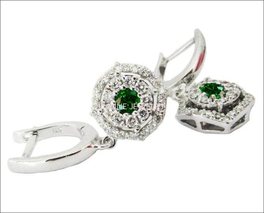 Vintage Diamond Earrings Genuine Emerald Earrings Drop Earrings Chandelier Earrings Wedding Earrings Diamond Floral Earrings 14K White Gold