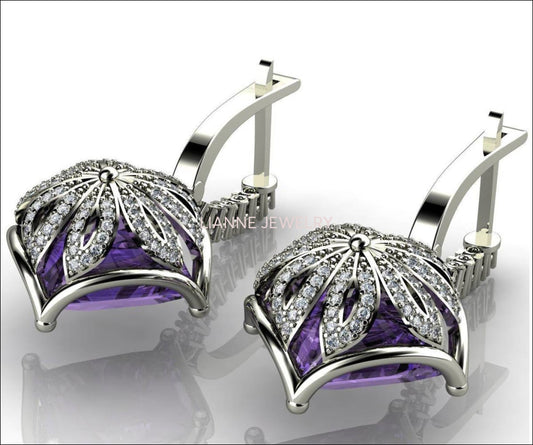 Drop Earrings Amethyst Earrings Lever back Earrings Amethyst Diamond earrings Amethyst Drop Earrings bridesmaid Earrings Gold