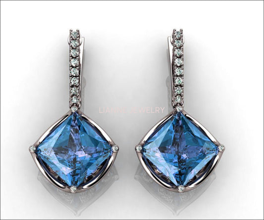 2.56 carat Diamonds and 14x14mm Huge Topaz Earrings Lever back 216 Diamonds Earrings Topaz Diamond earrings Bride Topaz Drop Earring