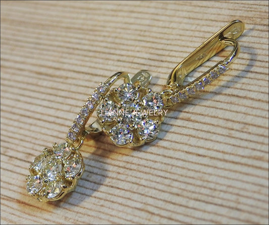 Vintage Gold Earrings Pave Earrings Leverback Earrings Diamond Earrings Cluster Earrings 14K Diamond Earrings