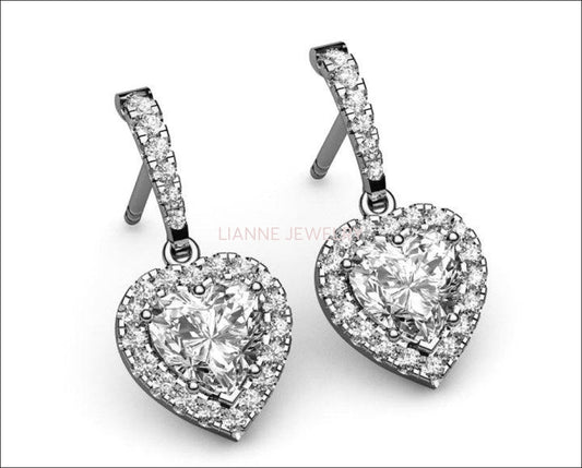1.3/4 carat Heart Studs Drop Earrings Diamonds surrounding