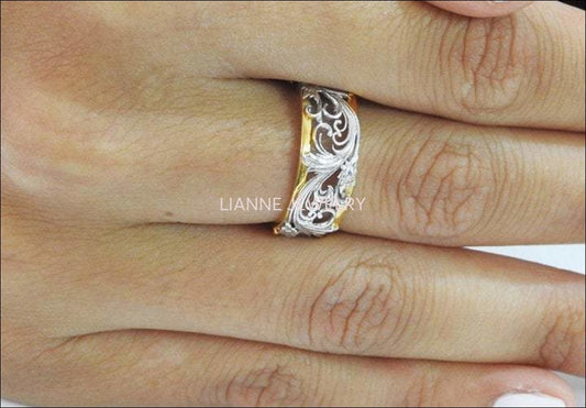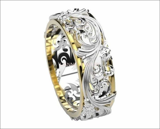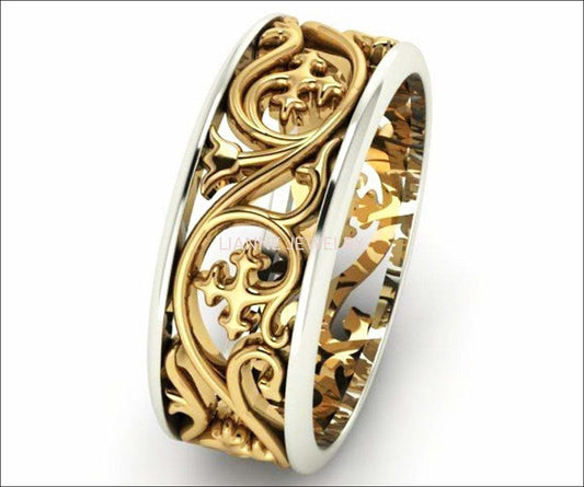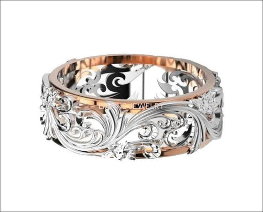 2 Tone Rose gold Floral Band Wedding band Celtic Band Botanical Band Ornament Filigree Band