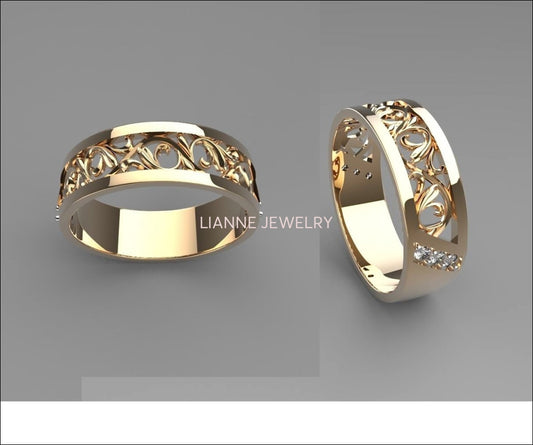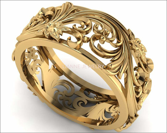 18K Rose gold Filigree Band, Leaves Band Wedding Band Flower Jewelry