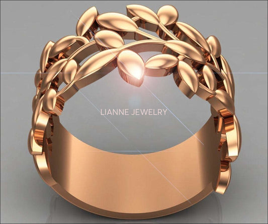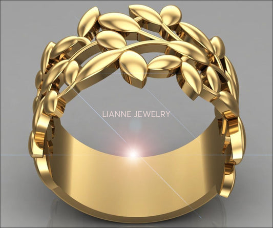 18K Gold Leaf Ring, Wedding Ring, Twig Ring, Wide Ring