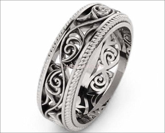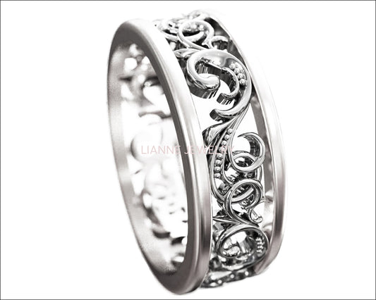 14K White gold Botanical Band Ring Celtic Band Wedding Band Floral Band Edwardian Ring Ornament Filigree Band