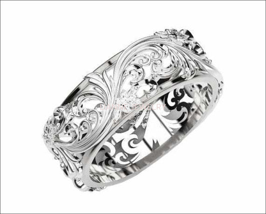Men's 14K Wedding Band Ornament Ring Celtic Ring Flower Ring Milgrain Edwardian Ring