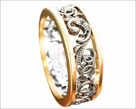 Rose Gold Ornament Band 2 Tone Anniversary Band Celtic Band Floral Band Filigree Band Edwardian Ring