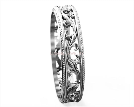 Silver Flower Wedding Band Filigree Ring Band Leaves Ring Twig Ring Milgrain Ring Wedding Ring Band in Silver