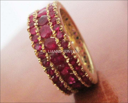 Ruby Anniversary Ring Thick Ring Ruby Eternity ring Edwardian 18K Gold 3-Row Anniversary Eternity 3.1/3 carat Natural Rubies July Birthstone
