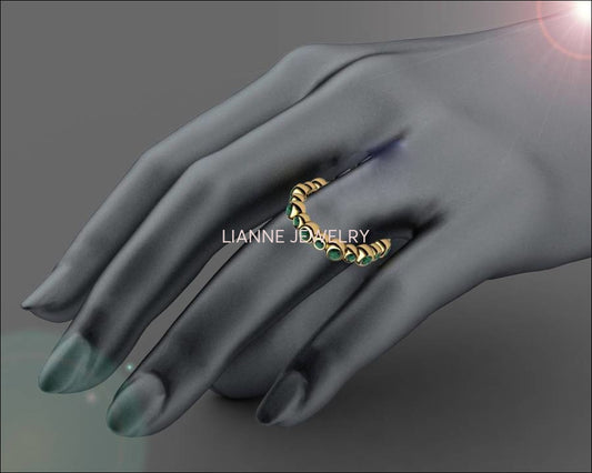 Emerald Eternity Ring 20 stones 18K gold Jewelry marriage anniversary ring wedding party May Birthstone