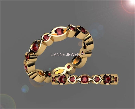 Eternity Ruby Ring, Red Ruby Anniversary Ring, Ruby Anniversary Ring Rose Gold