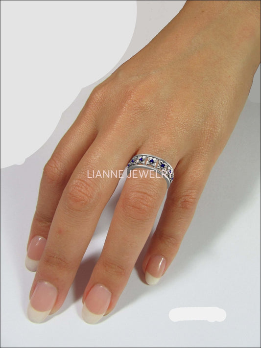 18K Sapphire & Diamond Exclusive Wedding Band 115 stones Eternity Ring anniversary ring Anniversary Gift