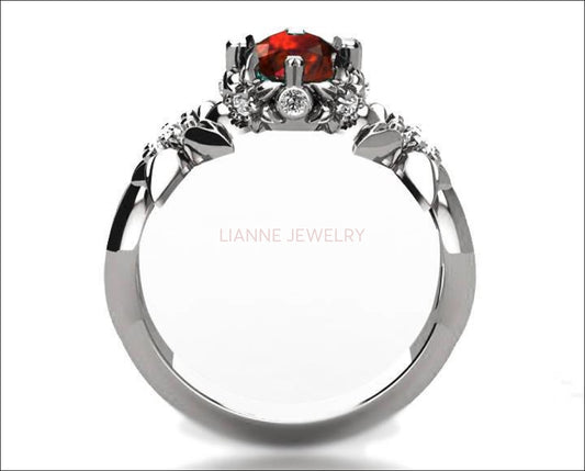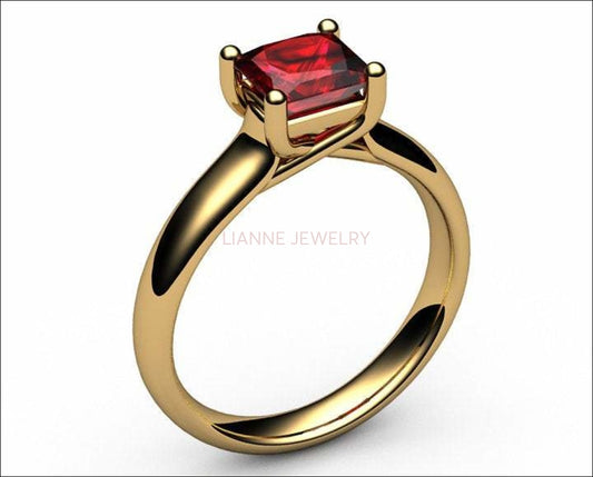 18K Ruby Solitaire Ring, White gold Ruby Ring, Unique Ruby Engagement Ring, Promise ring for Her