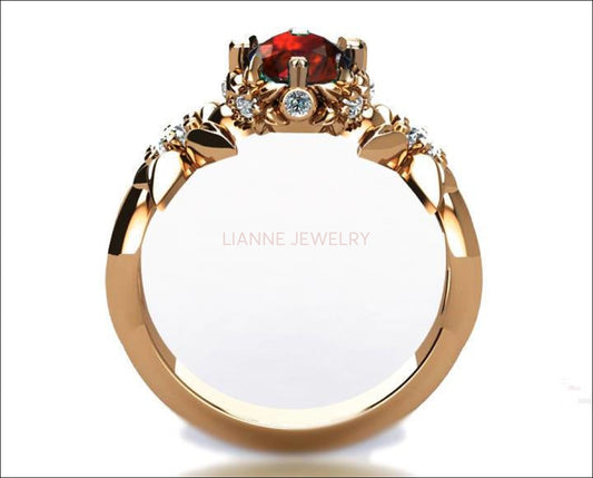 Promise ring Gold ring Anniversary ring Edwardian ring unique ring Solid Gold Asian Ruby ring Flower ring, 14K or 18K Rose gold