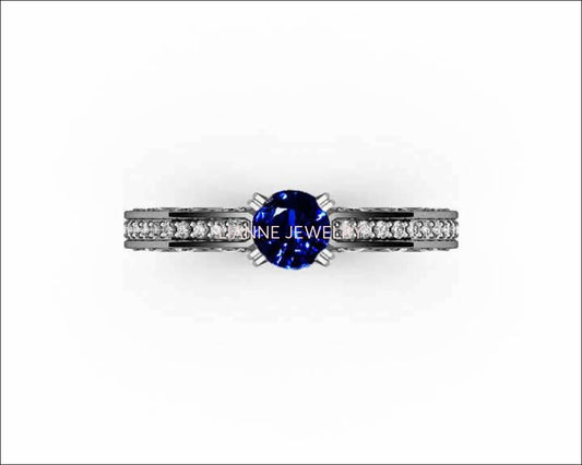 Unique Ring Engagement Ring Diamond Ring Blue Sapphire Bella channel-set pavé half moon trellis crafted in 18K White gold