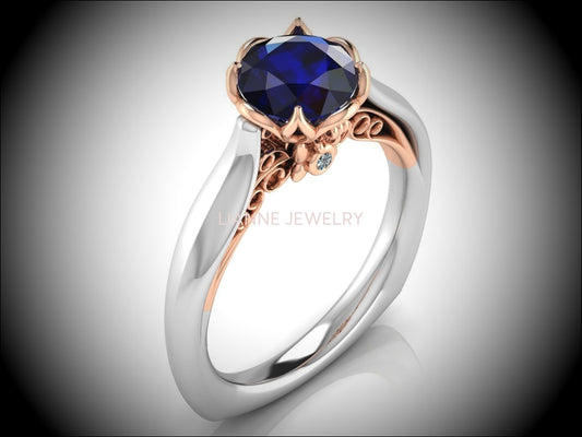 Flower ring leave ring Art Nouveau ring Unique ring Solitaire Sapphire Engagement Ring Solid 18K, White gold