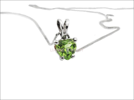Peridot Heart Pendant in 14K White gold Minimalist pendant