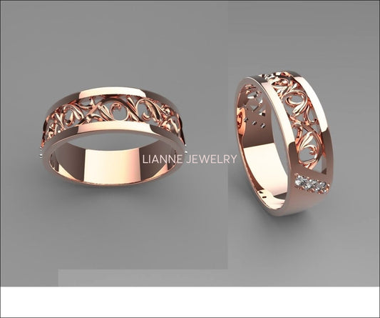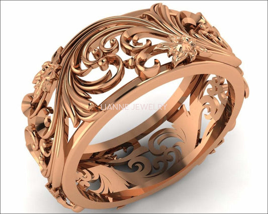 18K Rose gold Filigree Band, Leaves Band Wedding Band Flower Jewelry