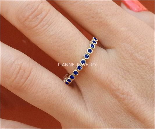Rose Gold Band Blue Milgrain, Sapphire Wedding band Ring Gold Band, Blue Sapphire Gold Ring, Natural Sapphire Band, Blue Sapphire Ring