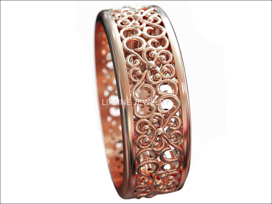 14K Rose Gold Filigree Ring, Filigree Wedding Band